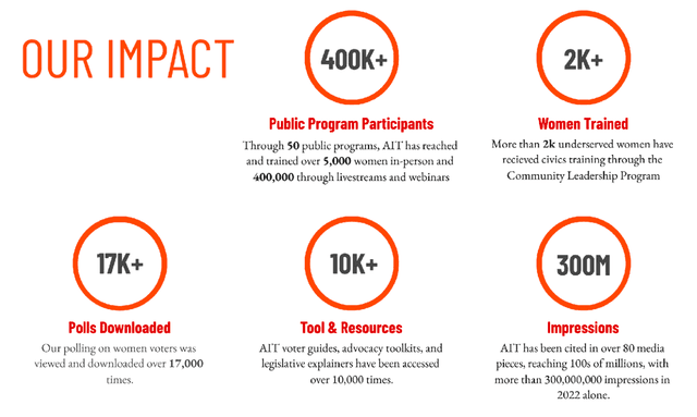 All In Together (AIT) is a nonprofit group that helps women learn how to get involved in their communities and government. Since 2014, they have train...